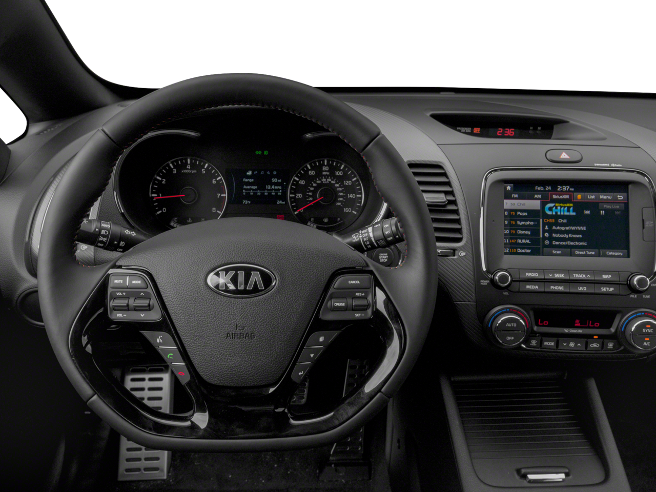 - Radio: UVO Link AM/FM/MP3/SiriusXM w/Navigation -inc: Android Auto and Apple CarPlay, 4.2-inch color LCD screen, 6 speakers w/door-mounted tweeters, USB/auxiliary input jacks and Bluetooth® wireless technology