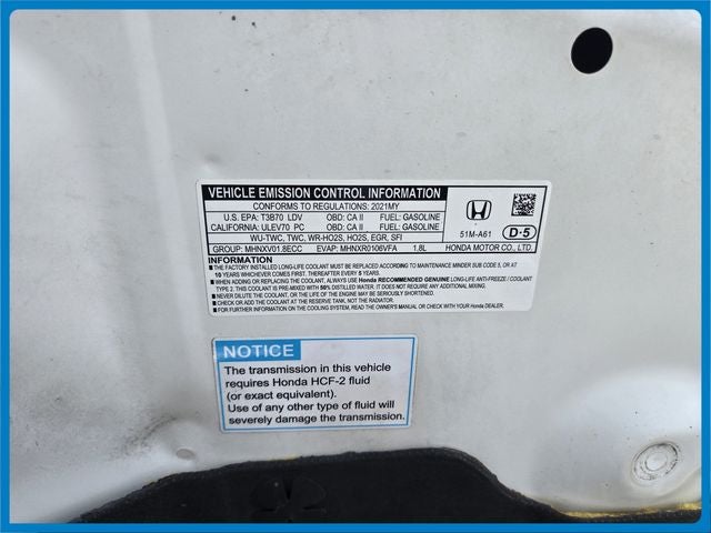 - Radio: AM/FM/HD Audio System (180-Watt) -inc: 6 speakers, 7" display audio w/high-resolution electrostatic touch-screen and customizable feature settings, Bluetooth® HandsFreeLink and streaming audio, Radio Data System (RDS), Speed-Sensitive Volume Compensation (SVC), 1 front 1.0-amp USB audio interface, 1 front 1.5-amp USB smartphone/audio interface, Apple CarPlay integration, Android Auto integration, HondaLink, Pandora compatibility and SMS text message function