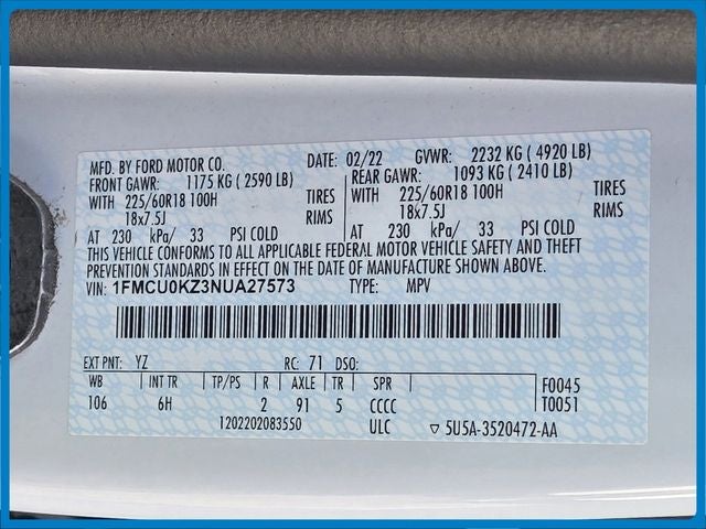 - Vehicle Name: Ford Escape