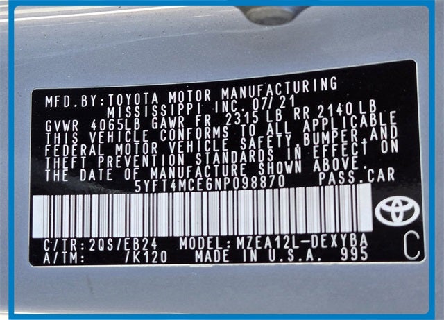 - Vehicle Name: Toyota Corolla