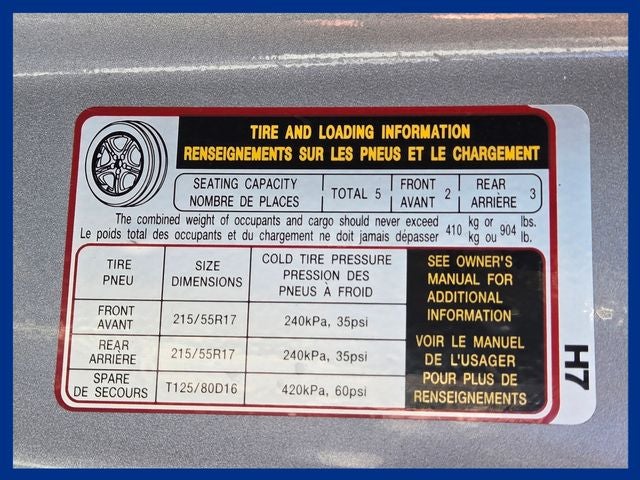 - Wheels: 17" x 7.0J Aluminum Alloy