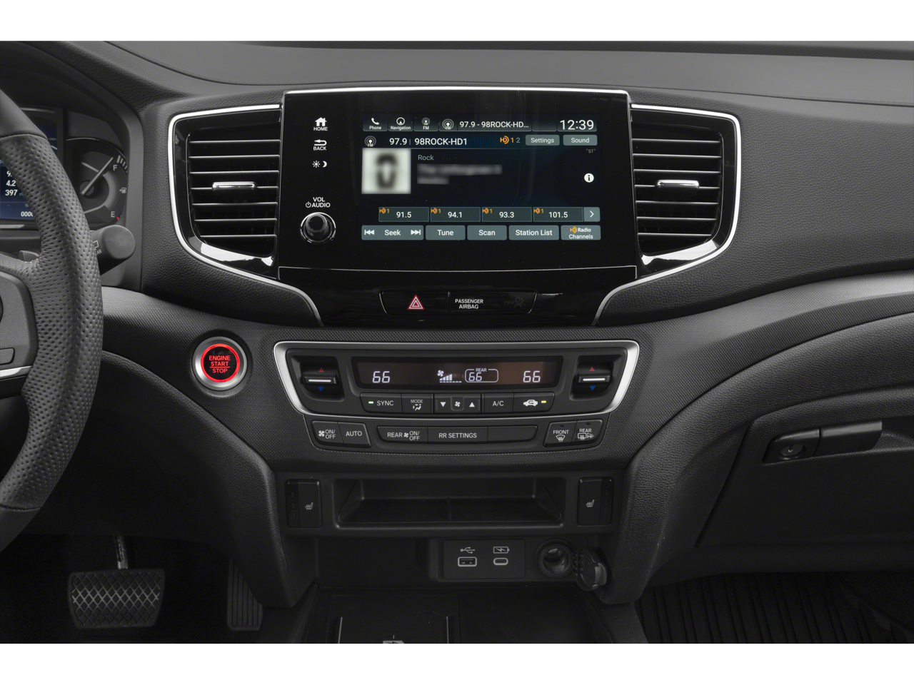 - Radio: 215-Watt Audio System w/7 Speakers -inc: subwoofer, 8" color touchscreen, Apple CarPlay compatibility, Android Auto compatibility, wireless phone charger (Qi), SiriusXM, HD Radio, Bluetooth® streaming audio, speed-sensitive volume compensation (SVC), (1) 1.5A USB-A data port, (3) 3.0A USB-C charging ports, Honda satellite-linked navigation system w/voice recognition and Honda HD digital traffic and HondaLink SiriusXM requires a subscription after any trial period. Wireless phone charger is compatible with both Qi and Powermat wireless charging standards. Check with your device's manufacturer for wireless capability. Check the HondaLink website for smartphone compatibility.